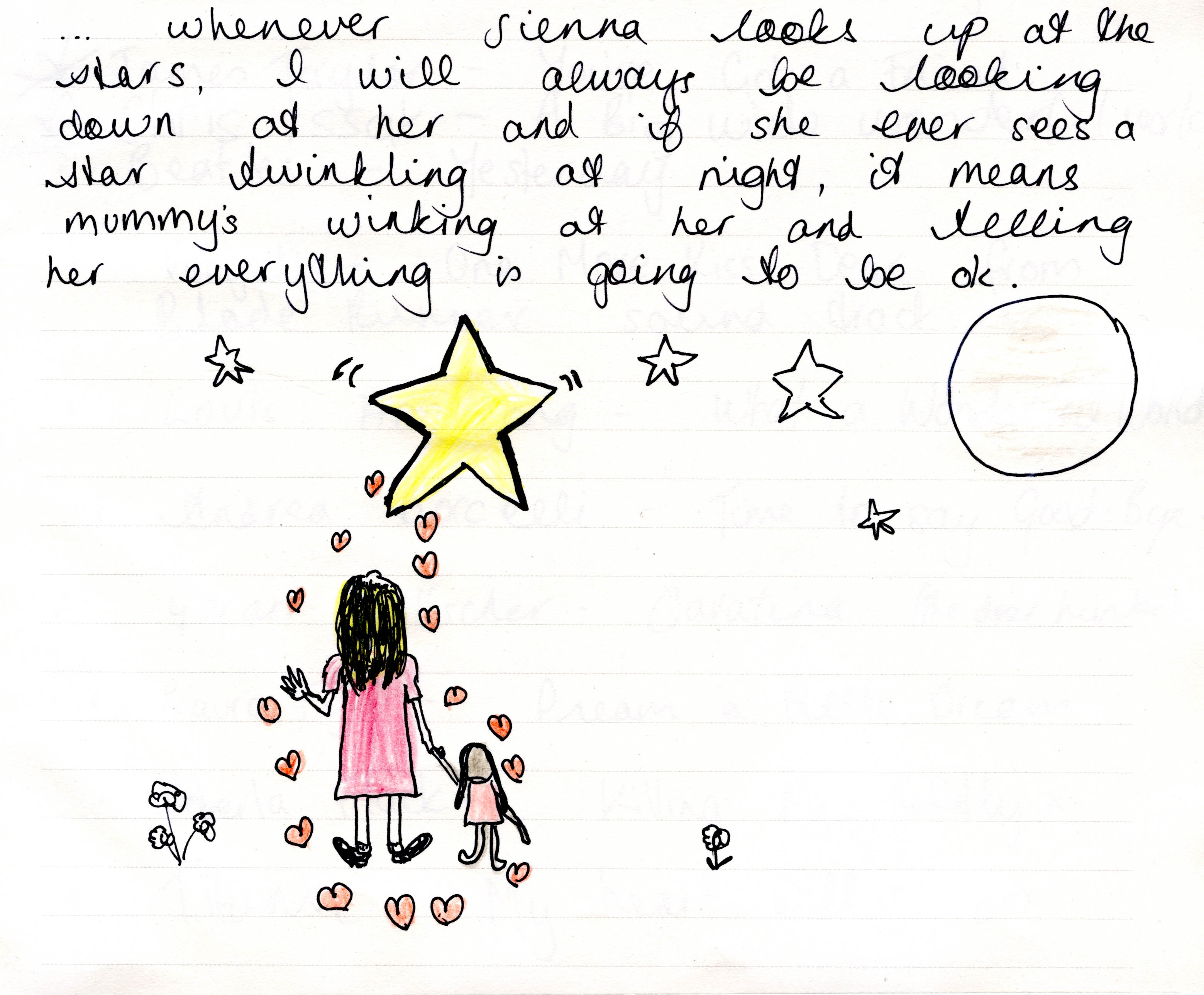 Over the last couple of years Rachel has created and written a beautiful book “Growing up Mummy” for Sienna. It tells the story of Rachel’s life through her own words, art and creativity. It will bring to life Sienna’s precious memories and help her to answer questions she could only ask of Rachel.